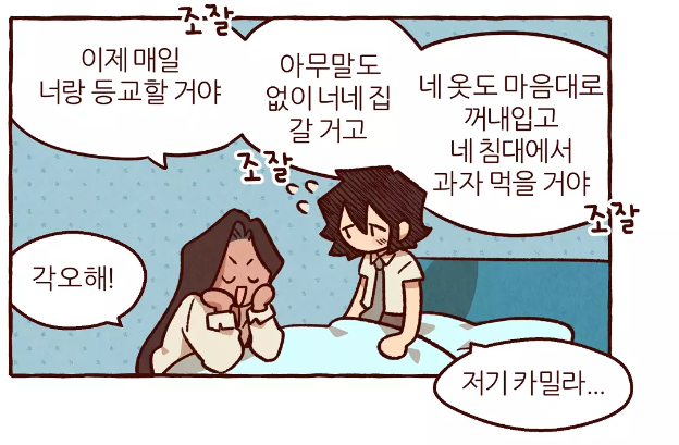 카밀라가 에이미 앞에서 애정어린 모습으로 변하는 갭이 아주 매력적입니다.